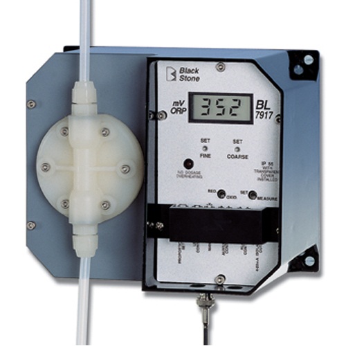 Máy kiểm soát ORP có hỗ trợ bơm định lượng. Máy có hệ thống đèn báo khi giá trị ORP vượt quá 200 mV so với giá trị cài đặt ban đầu.